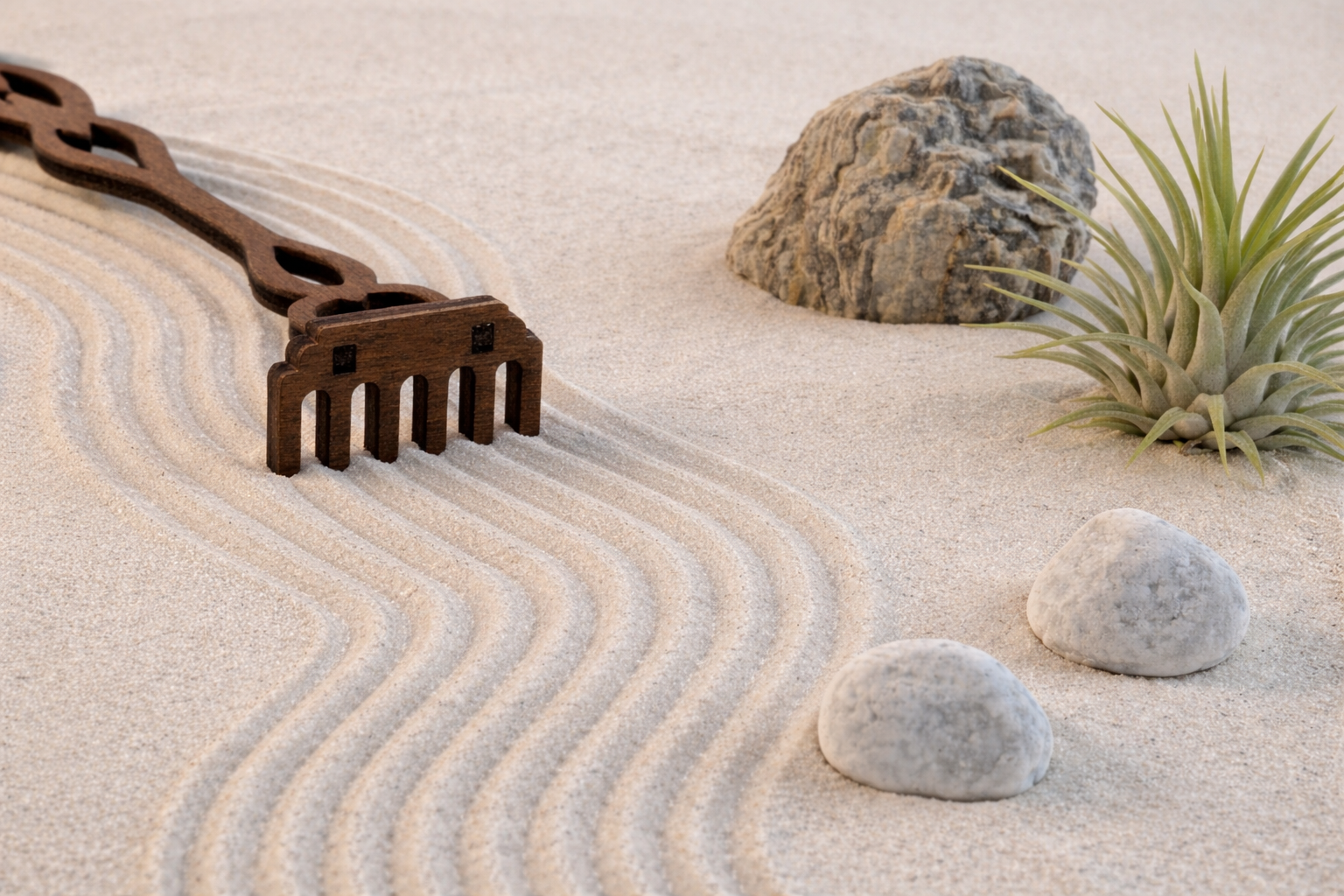 Ob im Wohnzimmer, Homeoffice, Yoga-Raum oder als Geschenk – unser Zen-Garten schafft einen Ort der Stille, der dich immer wieder an das Wesentliche erinnert.