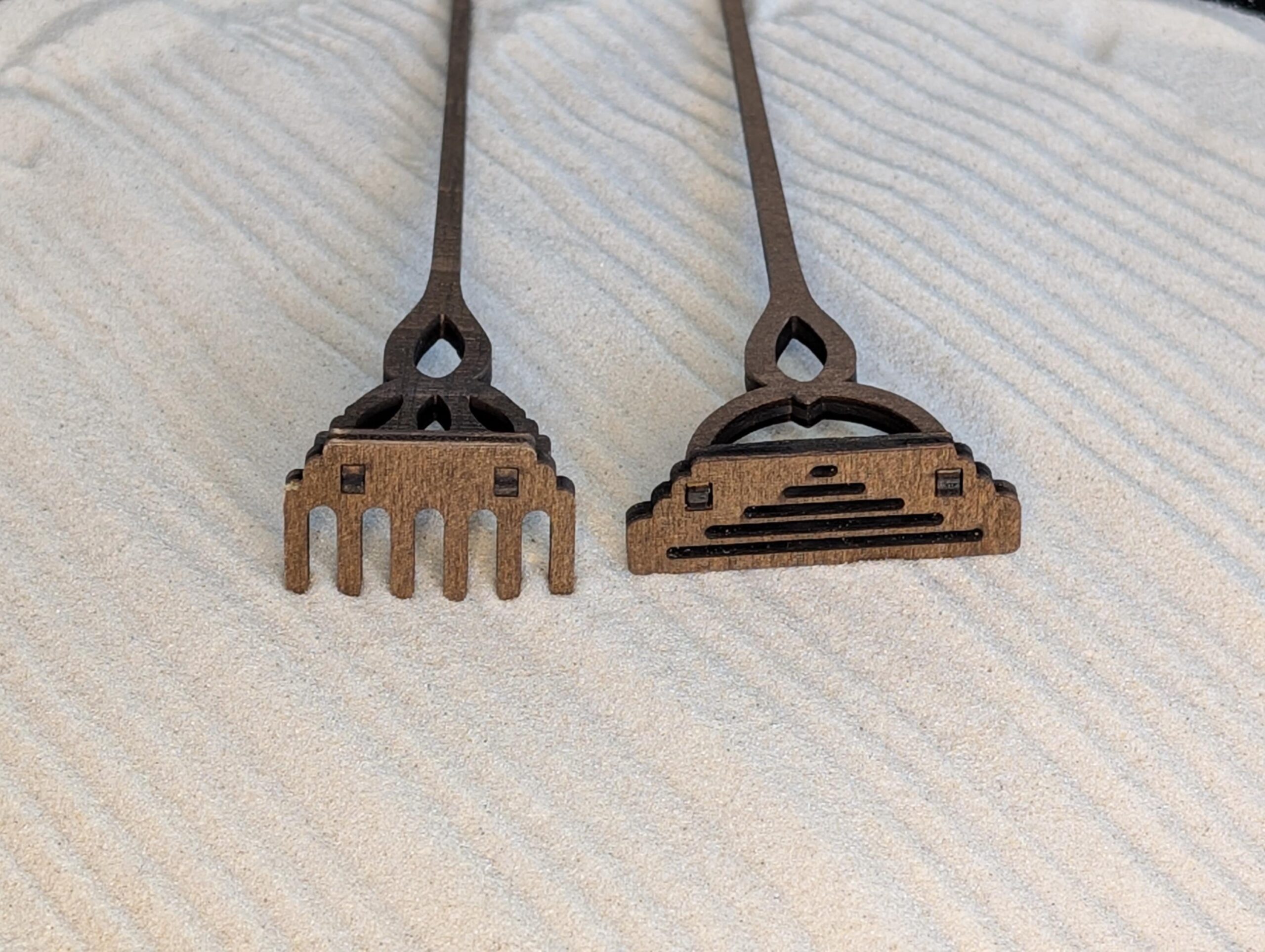 Zen-Werkzeug-Set aus Holz – Harke & Sandglätter für deinen Zengarten