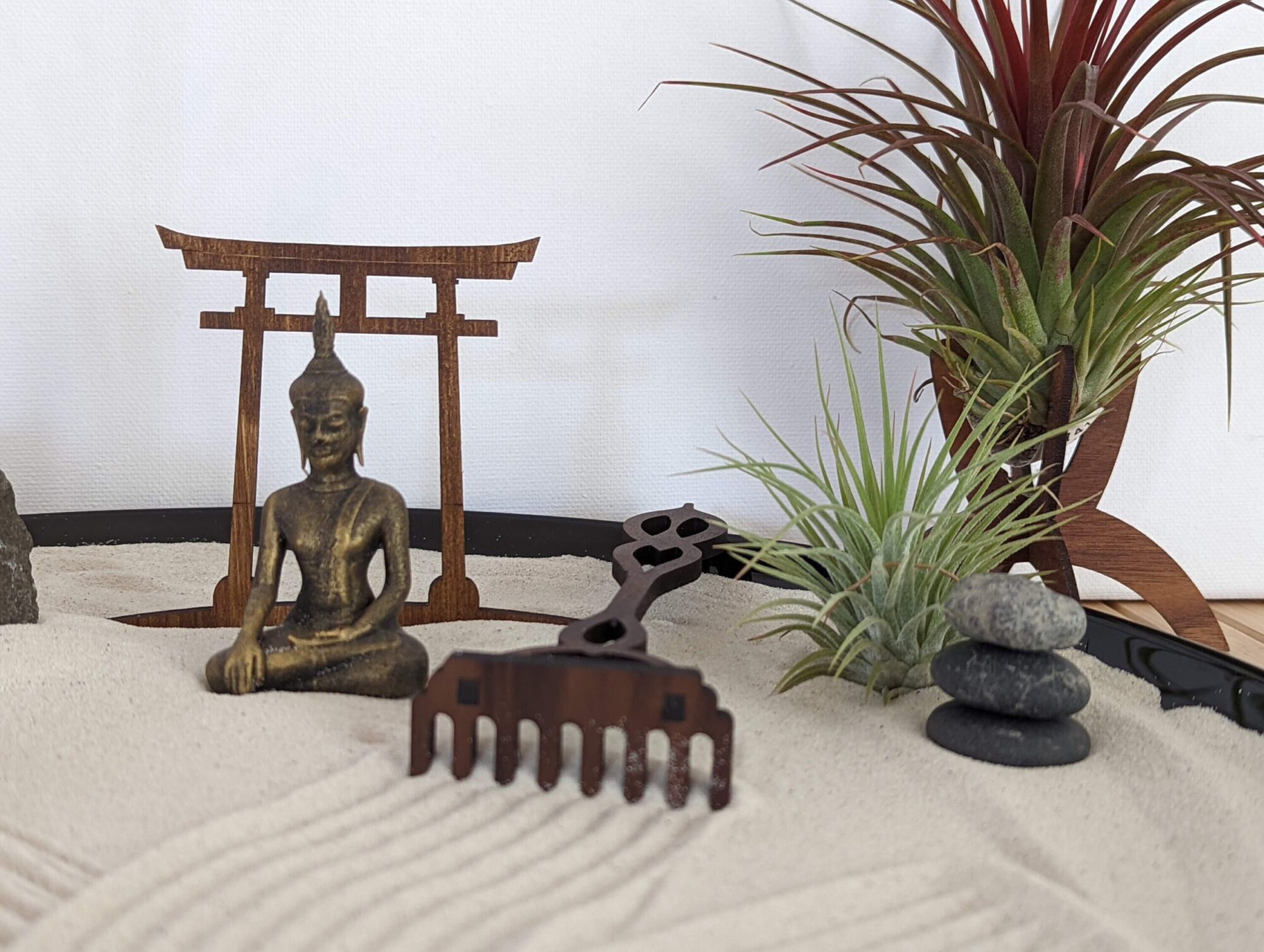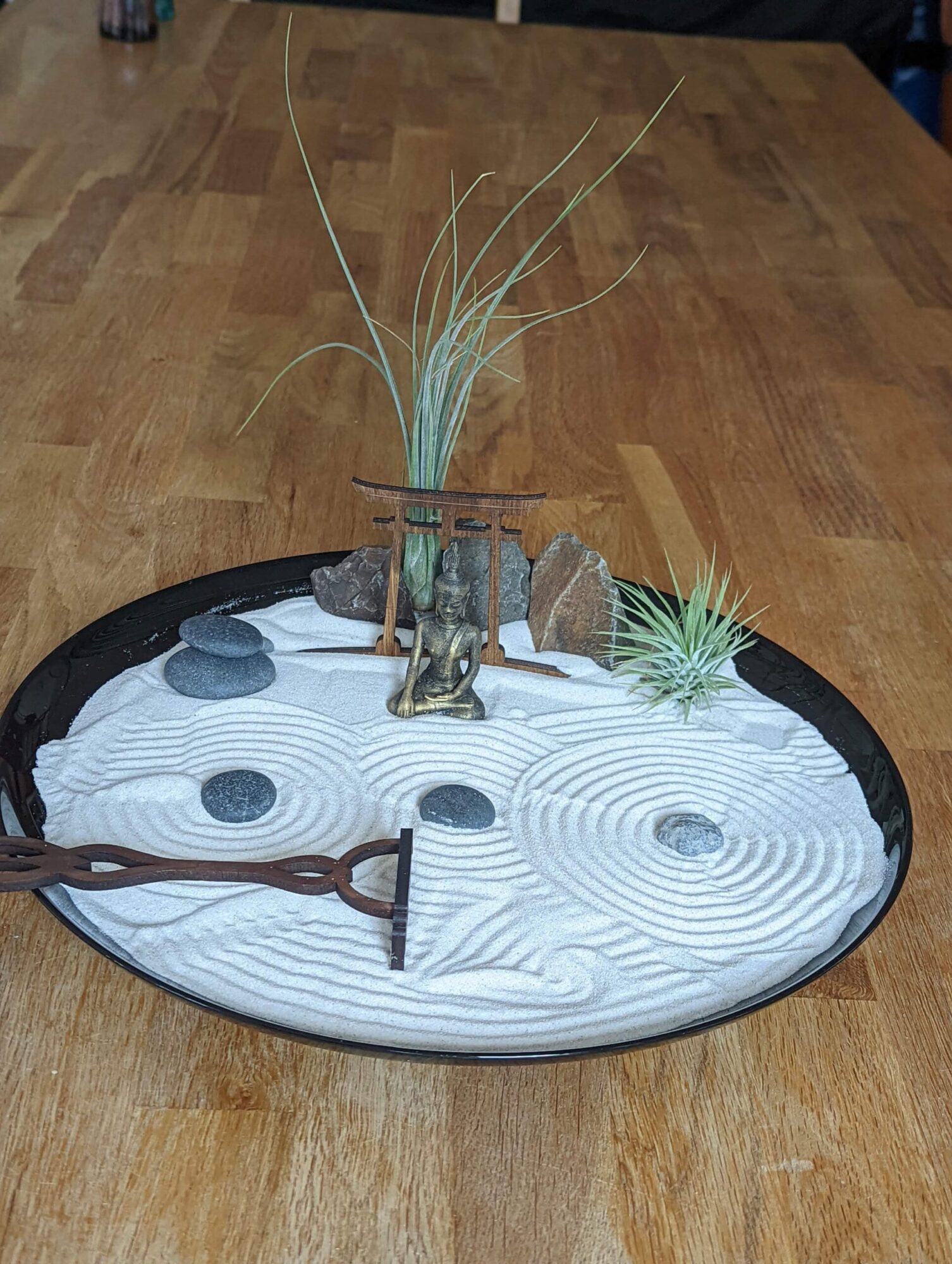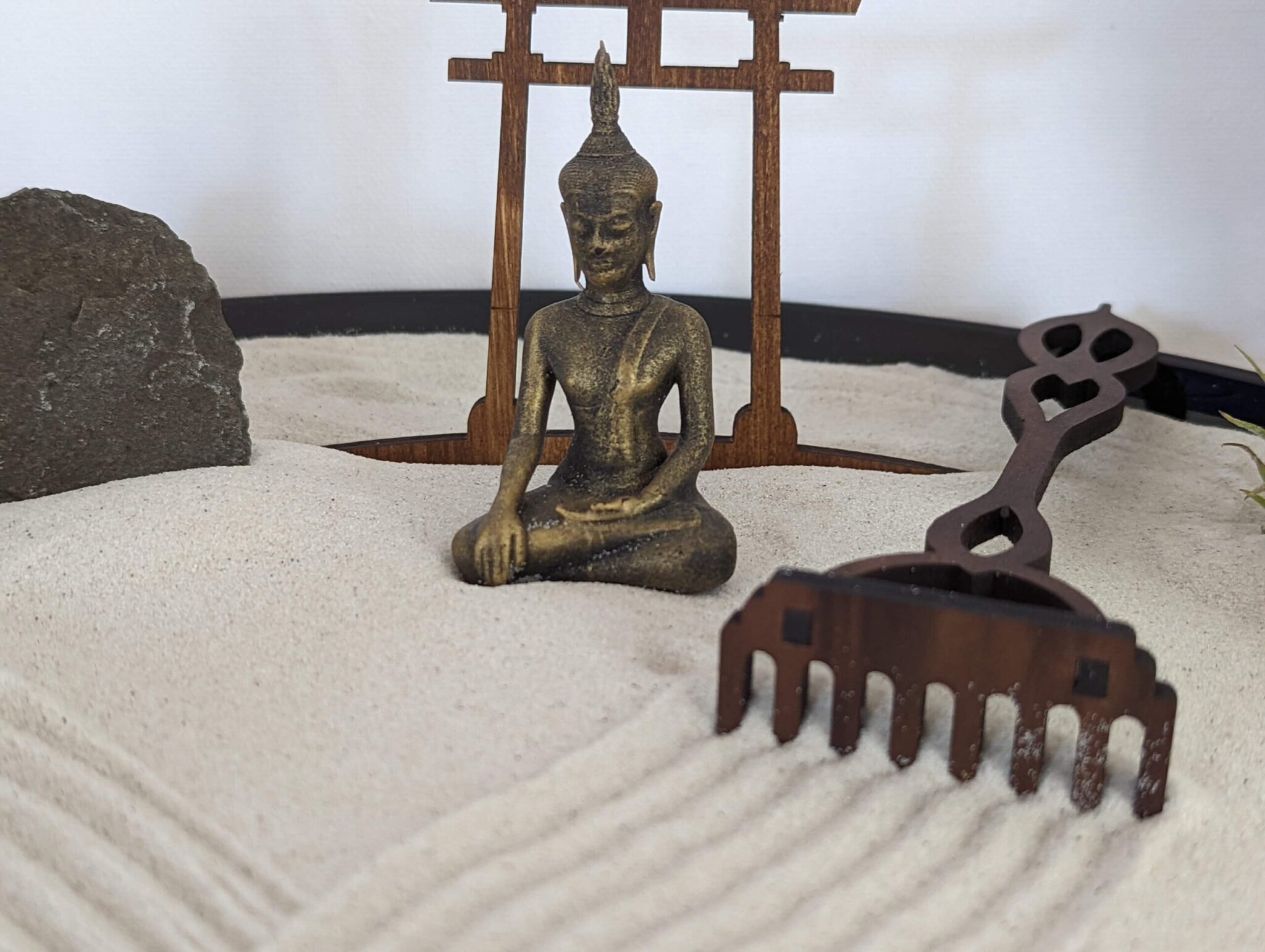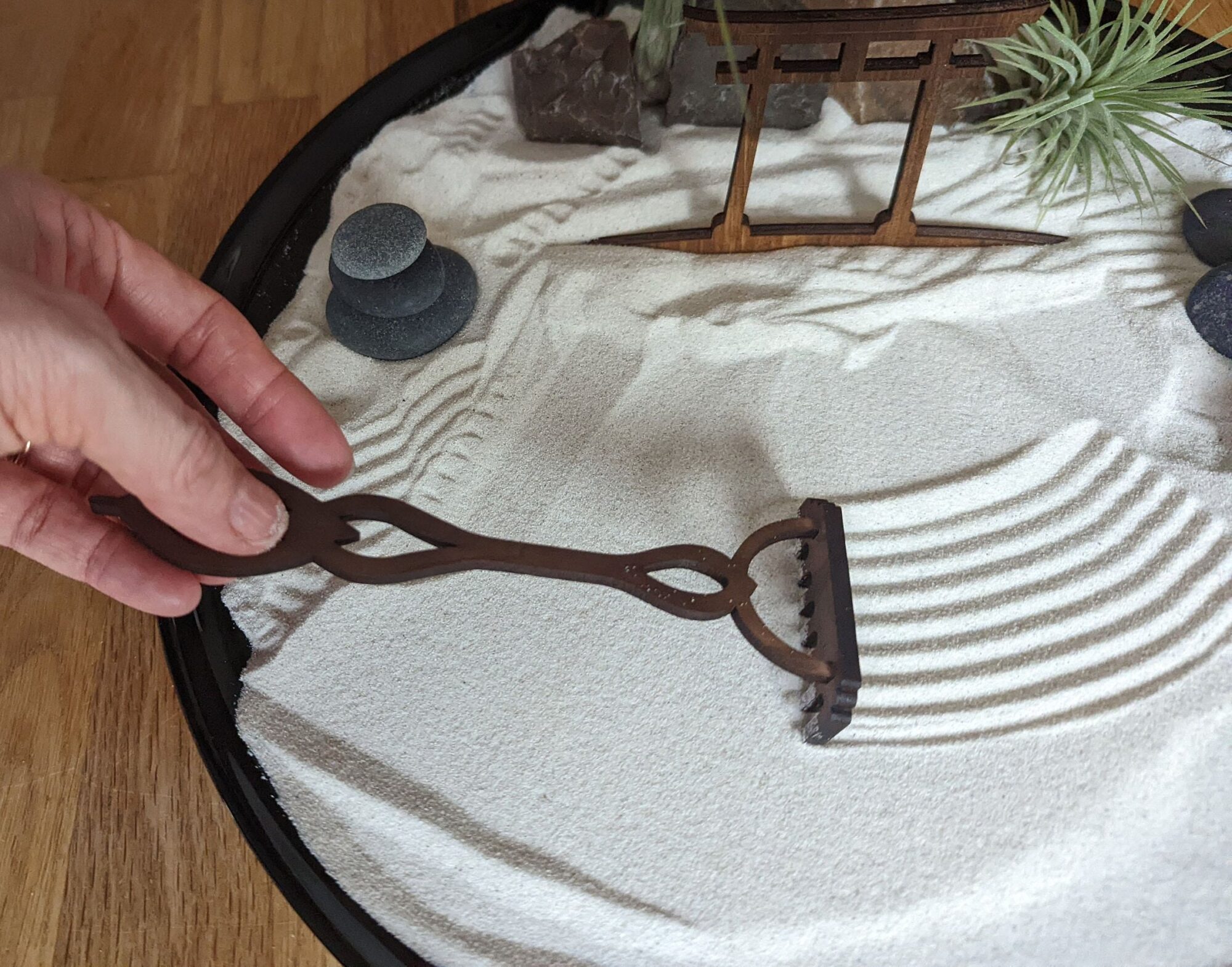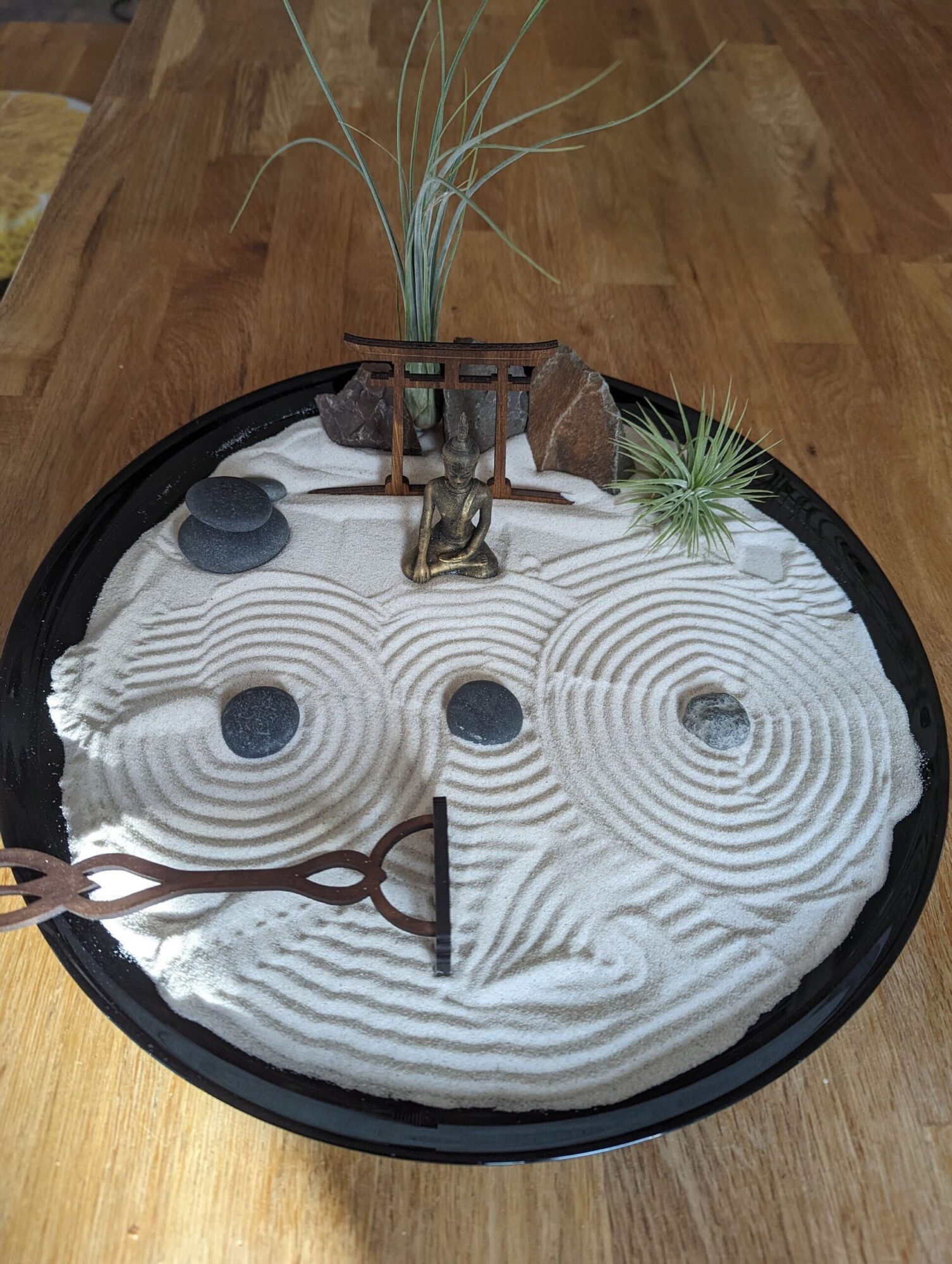 Viele nutzen ihn abends zum Abschalten oder morgens für ein paar ruhige Minuten. Durch das Gestalten des Sandes beschäftigt man sich bewusst mit einer einfachen Tätigkeit – genau das hilft, den Kopf kurz frei zu bekommen.