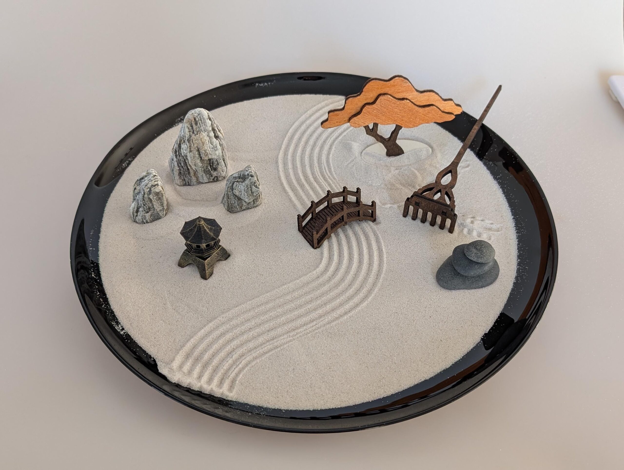 Der Zen-Garten wird als Set geliefert und ist sofort einsatzbereit.