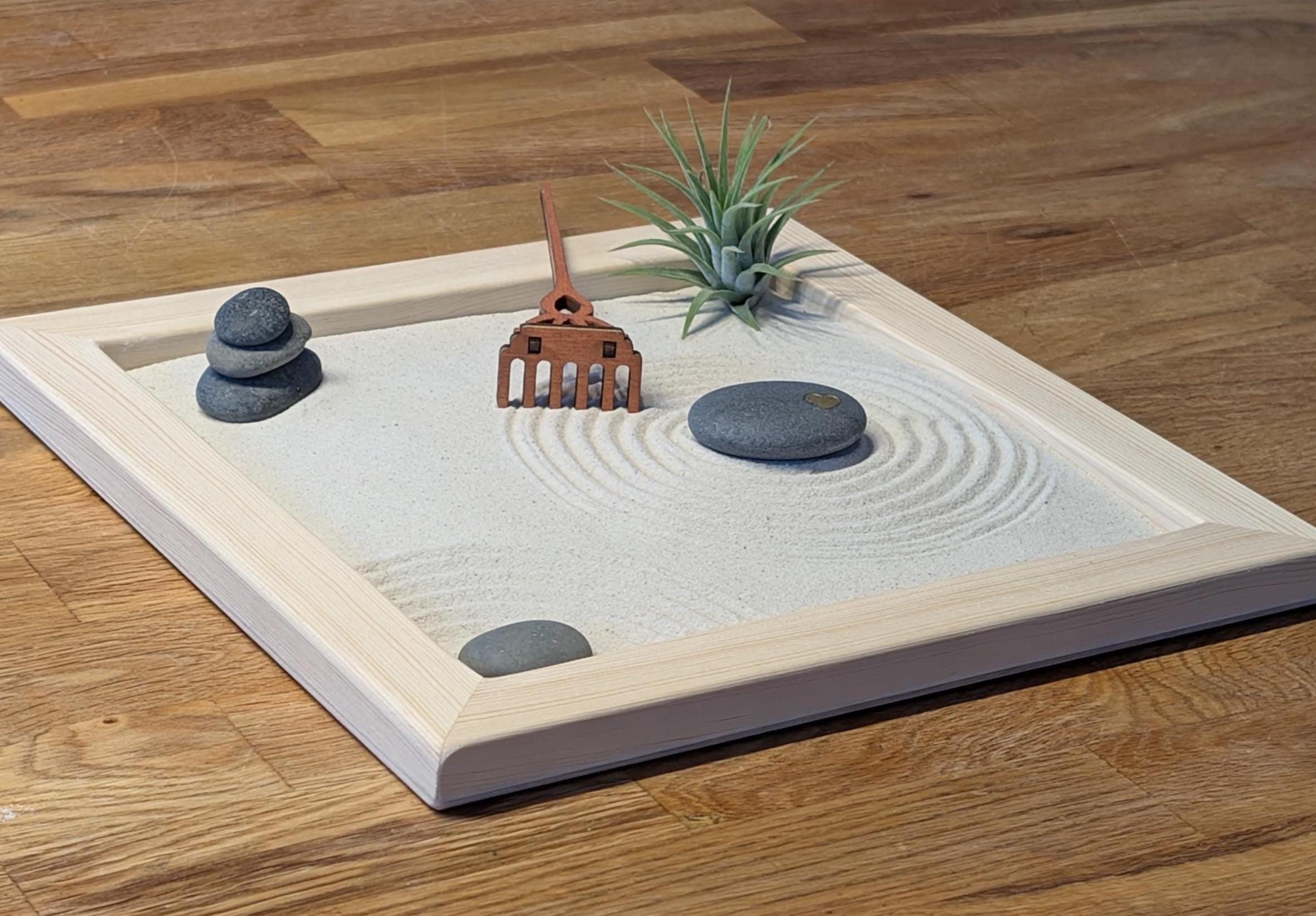 Der Zen-Garten wird als Set geliefert und ist sofort einsatzbereit.