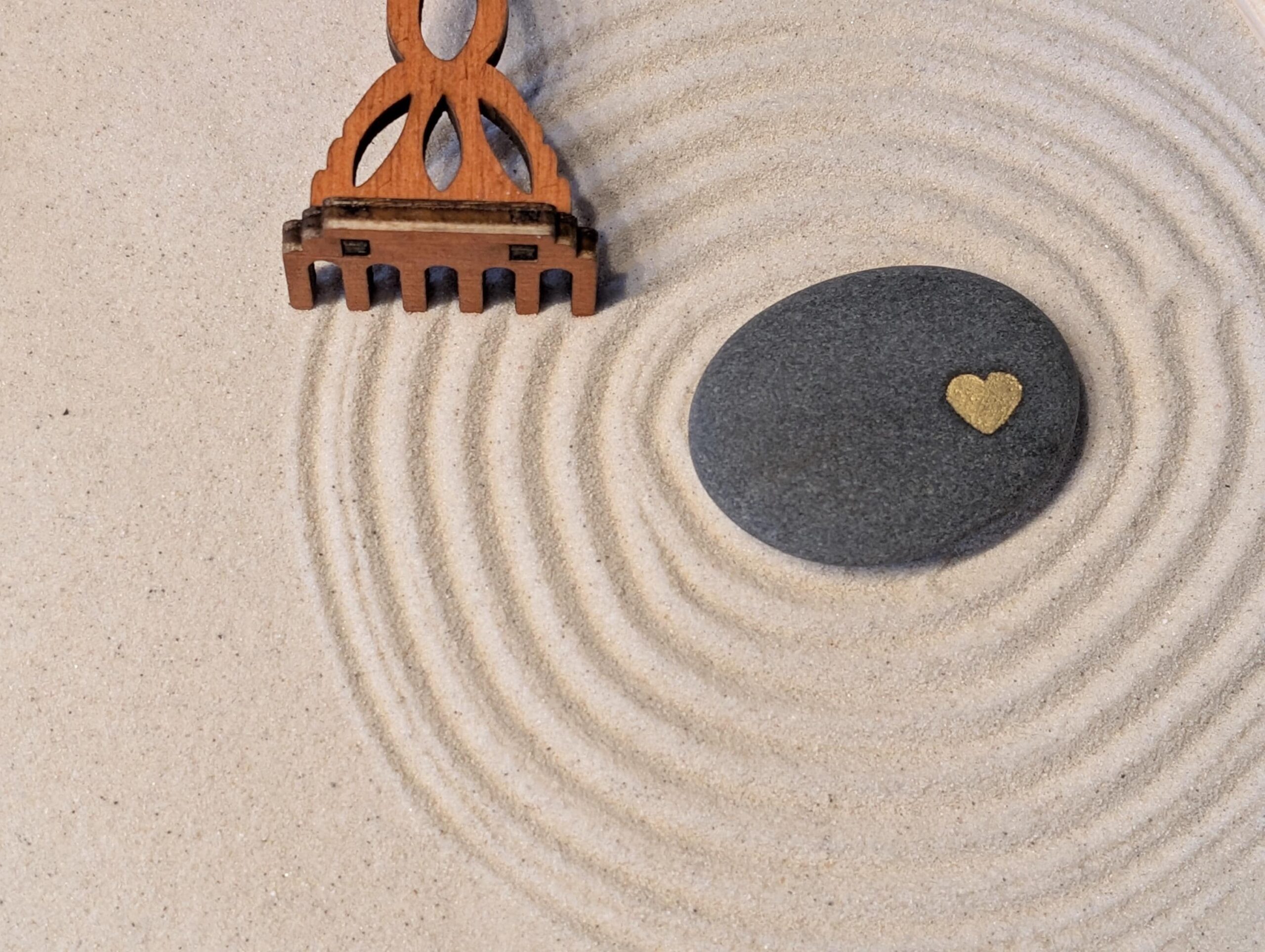 Ein Naturstein ist mit einem kleinen goldenen Herz versehen – ein dezenter Hinweis auf Wertschätzung, Nähe oder Dankbarkeit.