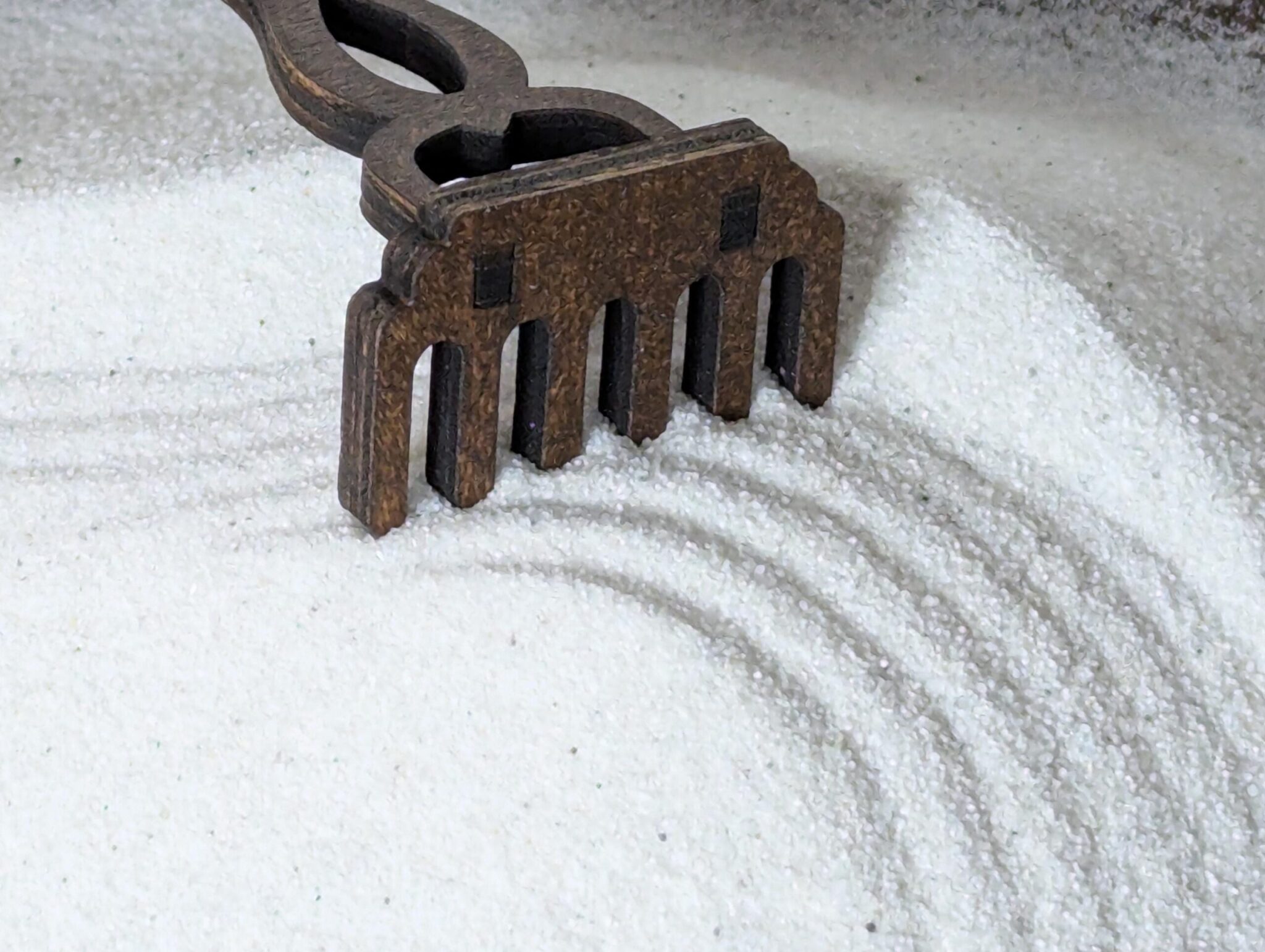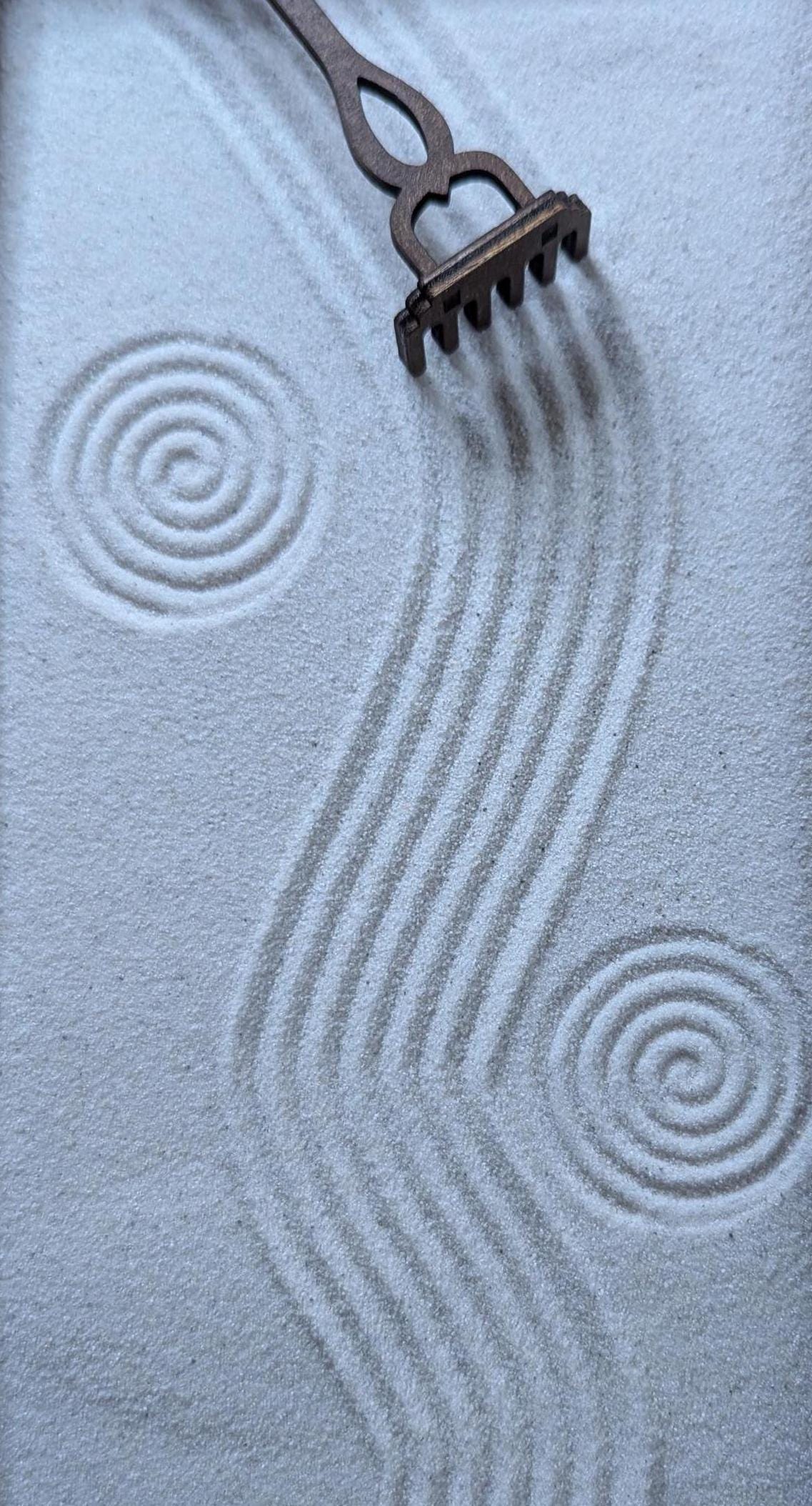 Die feine Struktur eignet sich besonders zum Ziehen von Linien und Kreisen mit einer Zen-Harke.