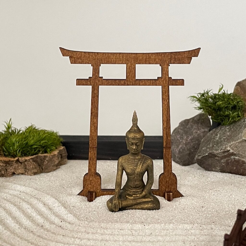 Flexibilität: Ohne Sand bist du nicht an die traditionellen Gestaltungselemente eines Zengartens gebunden. Du kannst deinen Miniatur-Zengarten immer wieder an verschiedenen Orten aufstellen oder sogar als tragbare Zen-Meditationsquelle nutzen, die du mitnehmen kannst, wenn du unterwegs bist.